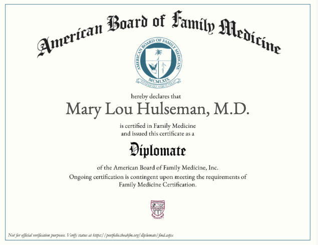 Certified by the American Board of Family Medicine